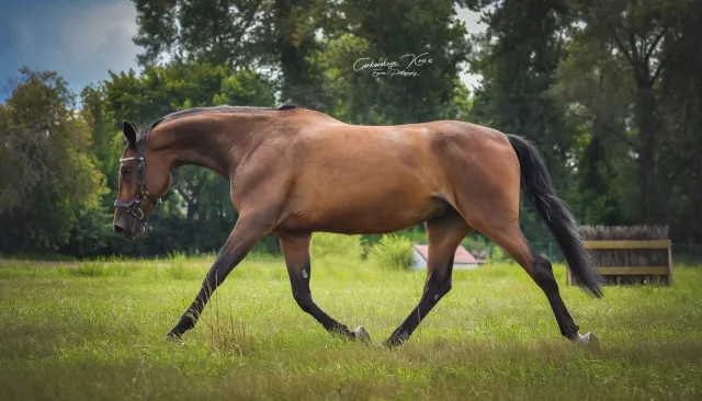 Перспективная кобыла с хорошей техникой прыжка и качественными аллюрами. Имеет стартовый опыт в конкуре по 60, дома прыгает связки 70, на свободе напрыгана до 120. Знает уступку, плечо, осаживание в руках. Будет интереса как спортсмену, так и любителю. В меру активная, работает на любых площадках. Спокойно ведет себя верхом даже после выходного. Колется, грузится без проблем.
