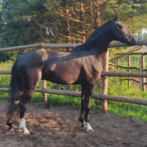 Жеребец. Ольденбургской породы. Вороной масти. 172 см в холке. 2022 года рождения. Адекватный, добрый, контактный, чуткий, сообразительный. В данный момент находится в стадии заездки. Все манипуляции без проблем. Находится в Тверской области.