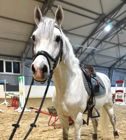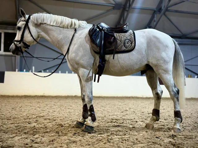 Мерин. Немецкий райд пони. Серой масти. 146 см в холке. 2016 года рождения.Отец - Нинтендо (Литтл Милтон Грей). Спокойный, добрый, контактный, ласковый, уверенный, не пугливый. Стартовый опыт до 100 см включительно, многократно участвовал в соревнованиях. Подойдет в выездку. Подойдет под ребенка с любым уровнем подготовки, лошадь - учитель. Спокойно ходит в поля. Спокойно ведет себя при ковке и ветеринарном осмотре, легко переносит транспортировку. Находится в Чехове.
