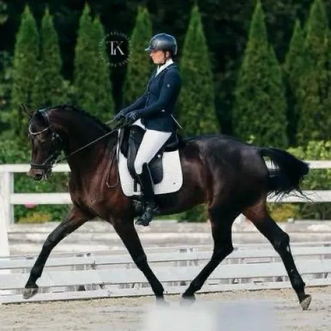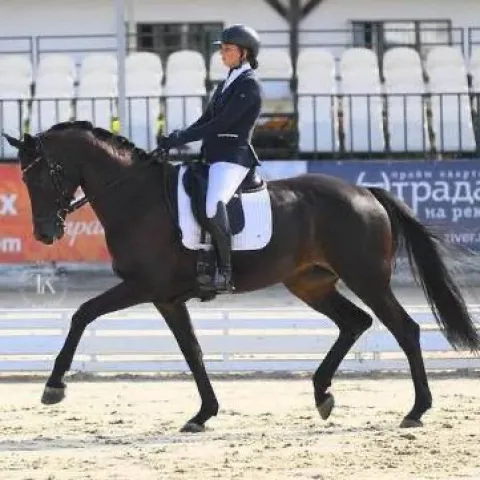 Кобыла. Ганноверской породы. Гнедой масти. 175 см в холке. 2017 года рождения. Отец - Millennium. Рождена в Германии.Хороший темперамент, ни дома, ни на соревнованиях ничего не боится. Три правильных, хороших аллюра. Уровень подготовки: Детские езды, Юношеские езды, готовится к МП. Средний процент - 68 по юношеским ездам, часто в призах. Прекрасно реагирует на средства управления. Подойдет даже под слабого всадника, идеально возит девочку-любителя, дома и на соревнованиях. Имеется вет.чек.Находится в Москве.