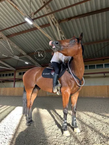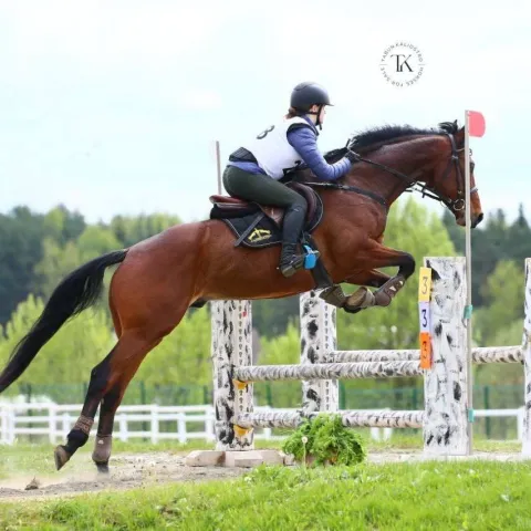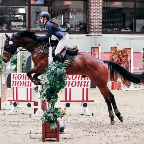 Мерин. Спортивной полукровной породы. Гнедой масти. 165 см в холке. 2016 года рождения.Сильный, грубости не терпит, жёсткую руку не принимает. Стартовый опыт до 105 см, в кросс-кантри до 90 см, дома связки до 130 см, в шпринте до 145 см. Уровень подготовки: ППДА, элементы ППЮ. Прыгает кроссовые барьеры, заходит в воду, любит купаться, умеет работать на кордео. Очень мягкий на рот, жёсткой руки не потерпит. Подойдет под сильного юношу или любителя с мягкой рукой. Имеется договор купли-продажи, паспорт ФКСР. Имеются рентгены и УЗИ ног от 2023 года. Возможна продажа с амуницией.Находится в Московской области.
