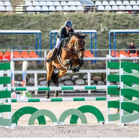 Жеребец. Латвийской теплокровной породы. Гнедой масти. 169 см в холке. 2014 года рождения. Ласковый, адекватный, ориентирован на человека, любит общаться, в быту не проявляет себя, как жеребец. Стартовый опыт до 120 см, дома прыгает до 140 см. Подойдет под амбициозного всадника. Всему научит, сам видит расчёт, выручает из любого положения, безотказный. Простой в управлении, справится даже ребёнок. Имеет три правильных аллюра, легко делает подъёмы, переходы, уступки, плечи, менки. Хорошая техника прыжка, удобный под верхом, манёвренный. Прыгает на обычной уздечке с простым железом, очень легкий на руку. В работе спокойный как танк, ничего не боится. По маршруту в меру энергичный, работает абсолютно на любых площадках, ни на что не смотрит. Все манипуляции без проблем. Имеется паспорт ФКСР. Возможна продажа с премиальной амуницией.Находится в Санкт - Петербурге.