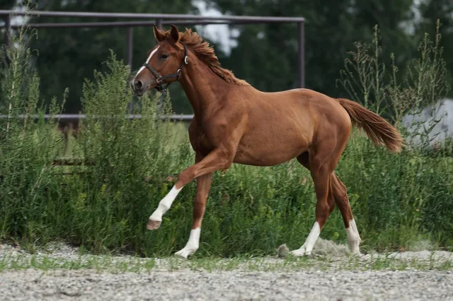 Крупная, костистая, легкая, будет высокого роста. С отличным галопом, с хорошим захватом. Идеально подойдет для конкура!