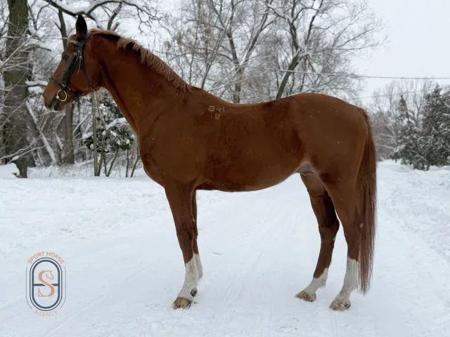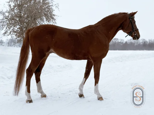 Настоящий конь-огонь с огромной отдачей в работе. Прекрасный партнер в выездку с отличными природными движениями. Эффектный, с лебединой шеей и ровными носочками.