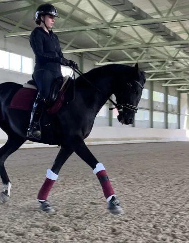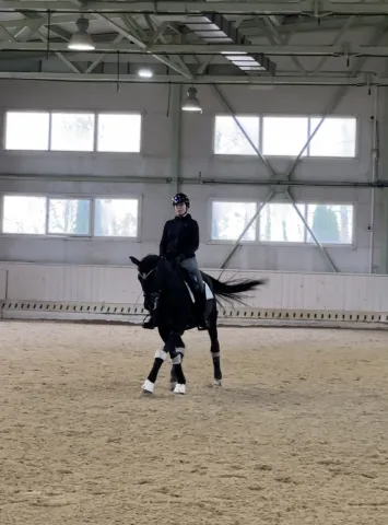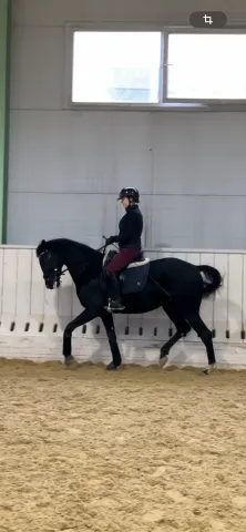 Кобыла полукровная (отец-Английская Чистокровная, мать-Русская рысистая)вороная, 2016 гр, готова на юношеские езды, плюс из малого круга легко делает контрпринимания на галопе, чистые менки в 4-3-2 темпа, шикарная рысь, чистые галоп и шаг.