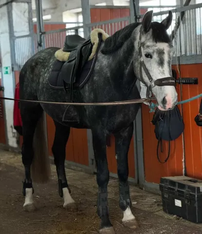 Молодой перспективный спортсмен: проходит базовый тренинг для молодых лошадей, постепенно и бережно напрыгивается. Обладает исключительной восприимчивостью к сигналам всадника — идеально реагирует на команды руки и ноги.