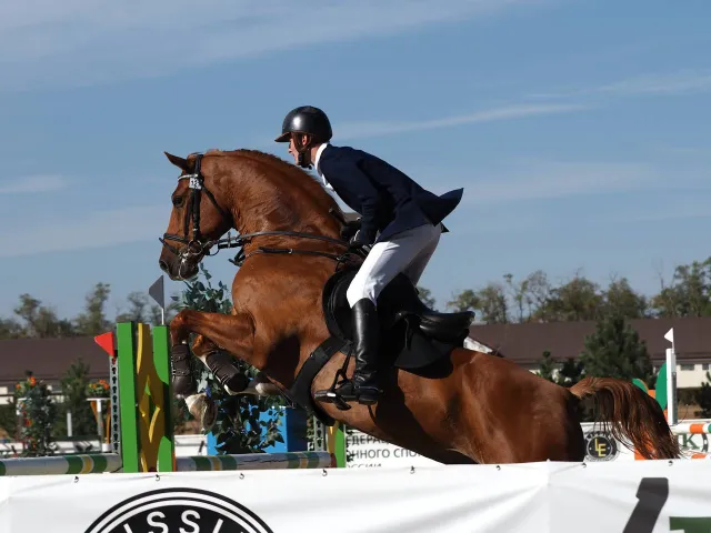Начал успешно стартовать по высоте 130см. Может выше. Очень аккуратная лошадь. Идеальная голова, ездили без седла и уздечки в поле, ничего не боится, ориентирован на человека, безопасный для ребенка. Идеально выезжен,подойдет любому всаднику. Прыгает все виды конфигураций, в том числе открытую