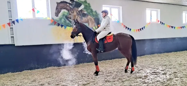 Сказочная Грация Предлагается к продаже шикарная кобыла на движениях с техничным прыжком. Продажа от собственника Рост 171 см 2021 года Полукровная порода ( англо-буденовская )Шикарные природные движения, превосходная техника прыжка,прыгает с запасам. Маршруты 110 см потенциал выше. Связки 120 см Адекватно себя ведёт с другими лошадьми, спокойна в полях, абсолютно здоровая , все манипуляции (ковка, колоть, грузить, купаться) без проблем. Лошадь подойдет абсолютно под любого спортсмена и ребенка. Находится в Ставропольском крае город ПятигорскПоможем с доставкой Цена по запросу Телефон для связи//89887565201///