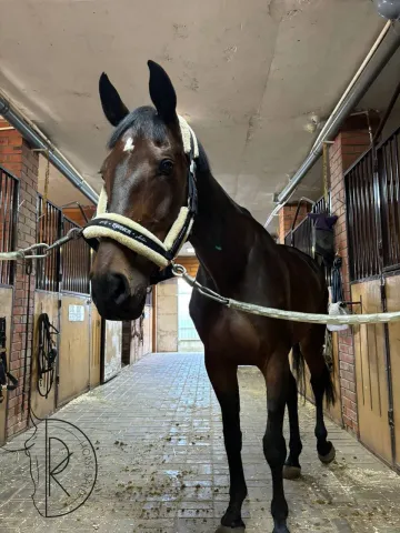 🌱Ганноверской породы. Отец - лицензированный голштинский жеребец Алькаро (линии Кор де ла Брайер и Альме Z ). Мать - дочь Кинг Лайва (KWPN, линия Кор де ла Брайера). Стартового опыта пока не имеет. Поздней заездки, изучает базовую выездку, напрыгивается на свободе.