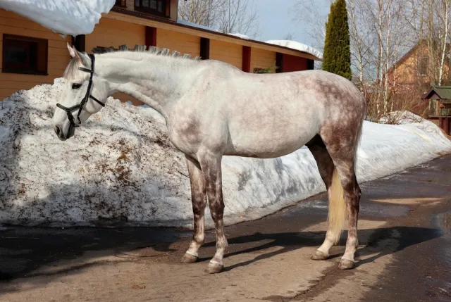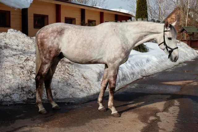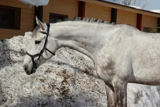 Находится в выездковом тренинге с декабря 2025 года. Начали делать уступки, боковые, менку