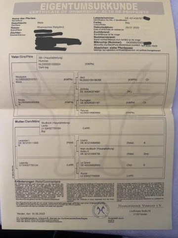 | Документы | Паспорт ганноверского союза Российские документы (ВНИИК и ФКСР) на оформлении |
