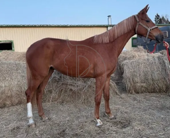 🌱 Поставлена на корду, знакома со всеми манипуляциями. Общительная, активная и доброжелательная кобылка. Обладает стабильной психикой. Отец успешно выступал в конкуре (150).