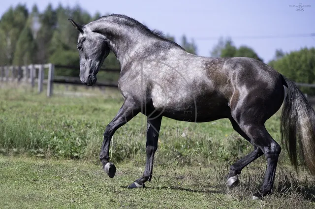 🌱 Андалузской породы. Отец, привезённый из Испании известный жеребец Lancero XCI, внук легендарного испанского жеребца Educado X. Мама - Lourdes, от привезённых из Испании родителей.