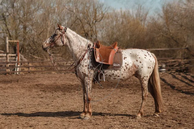 🌱 Орлово-алтайской породы. Чуткая к командам всадника под седлом. Три уверенных аллюра, уступки, плечо внутрь, пируэт на шагу, сайд-пасс. Ходит в поля одна и в компании. В смене всегда хочет быть первой. Работается в трюки - свечка, трапеция, поклон, тумба, в процессе баланс на заду. Жеребилась.