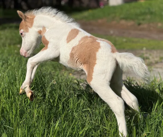 Смелый, игривый, общительный и очень контактный жеребёнок. Выставочного шоу-класса, имеет идеальный экстерьер миниатюрной лошади – настоящий арабчик в миниатюре, броская нарядная масть, выразительный арабский профиль, у жеребчика самая изящная мордочка из наших АМНА жеребят ставки 2025 г. Станет настоящим украшением вашего конного хозяйства. Стоимость соответствует эксклюзивному предложению, он великолепен.