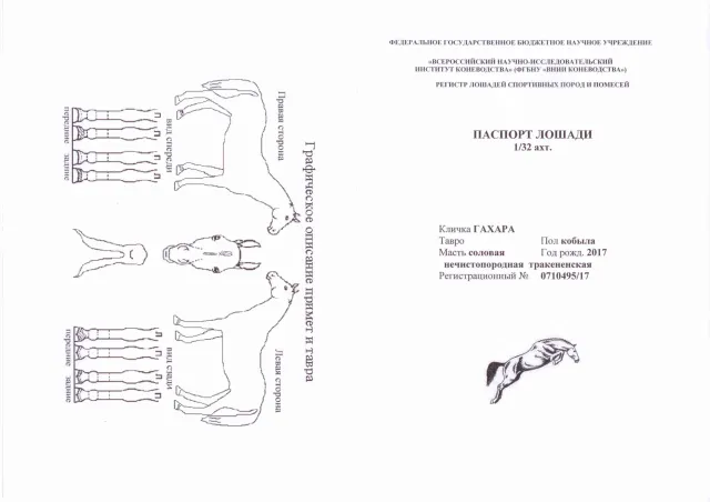 | Документы | Племенной паспорт ВНИИК, вет.паспорт, ДКП, паспорт ФКСР |