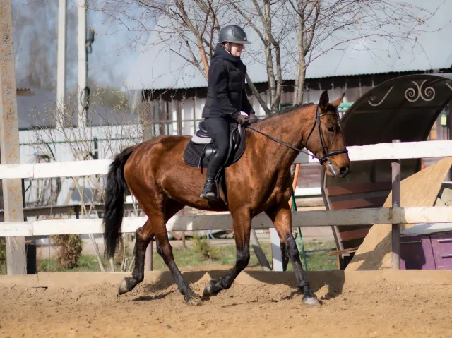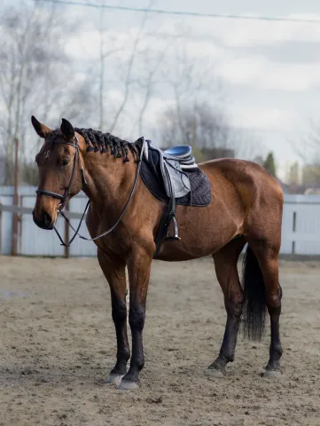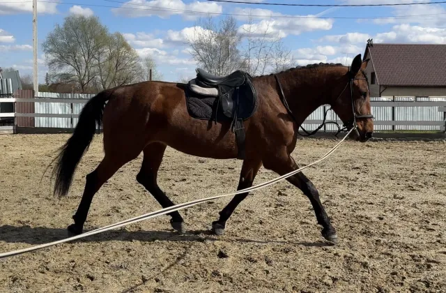 Кобыла 2020гр. Полукровная (рвп-буден). Рост 168см в холке.В полноценной верховой работе.Мягкая на рот и шенкель, очень удобная под седлом. Работает по кавалетти, пробовали прыгнуть, идет хорошо, не боится. Адекватная, не пугливая, спокойная, ласковая. Причина продажи с лошадью не связана. Стоит на вет учете, чипирована, все манипуляции на ура.Жеребилась, дает крупных костистых жеребят.