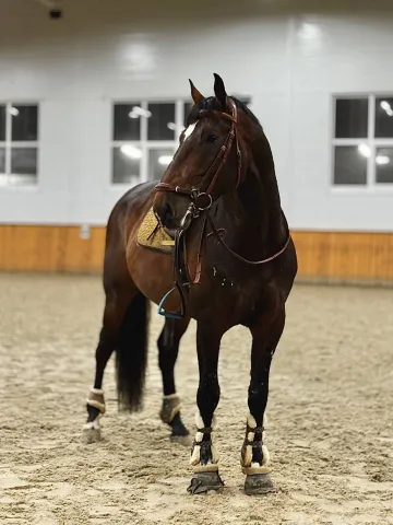 Очень красивый и харизматичный конь с сильной, брутальной энергетикой — невозможно пройти мимо! Обладает великолепной психикой, смелый, отлично выезженный и сбалансированный на всех аллюрах. Напрыган до 110 см, прыгает ровно, аккуратно, выполняет любые упражнения. Успешно выступал в ЮЕ с результатом 65%+, готовится к малому призу. Подойдёт всаднику любого уровня и прекрасно справится с любыми задачами. Специализация- выездка, конкур. Прямая продажа от собственника. Находится : Московская область, д.Коробово, КСК Конкорд. Торг. Приезжайте на просмотр!