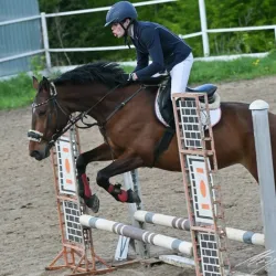 Кобыла англо рысистой помеси 2019 г.р., рост 153 см. Ранее была в конкурном тренинге, выступала по маршрутам 60 под ребенком, всегда в призах маневренная, быстрая. Дома прыгала до 80, в работе честная,…
