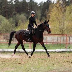 Кобыла тракененской породы 2020 г.р., рост 160 см. Стартовый опыт по маршрутам до 95, дома выше. Знает плечо внутрь, уступки, менки. Подойдет под уверенного всадника или сильного ребенка. Хороший характер,…