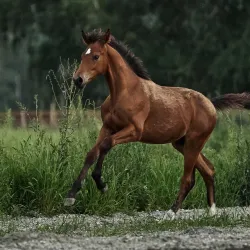Отец тракененский, мать донская. Заезжен под легким всадником. Сбалансированный и очень удобный. Полностью адекватный под седлом и в быту. Отлично проходит шпринт, на препятствие идет с удовольствием.…