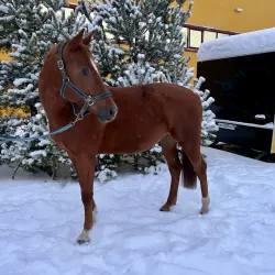К продаже предлагается нарядный рыже пегий жеребчик райд пони Аргонавт!Рост в холке 123 см (перспектива роста 145 см)Очень крупный для своего возраста, демонстрирует замечательный экстерьер и крепкую…