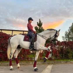 Сказочная Грация Предлагается к продаже шикарная кобыла на движениях с техничным прыжком. Продажа от собственника Рост 171 см 2021 года Полукровная порода ( англо буденовская )Шикарные природные движения,…