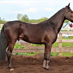 Очень изящная, высокая и красивая кобыла. Привезена в Россию в 2023 году и на сегодняшний день выступает в соревнованиях по конкуру с высотой до 140 см. Династия очень аккуратная и смелая лошадь с прекрасной…