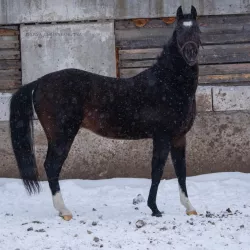 Очень изящная, высокая и красивая кобыла. Привезена в Россию в 2023 году и на сегодняшний день выступает в соревнованиях по конкуру с высотой до 140 см. Династия очень аккуратная и смелая лошадь с прекрасной…