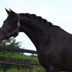 Кобыла 2024 года рождения, 140 145 см. в холке. Отец вестфальский Lancaster (маршруты 150 см.), его отец Lancer lll выступал в маршрутах класса S до 160 см. Мама Lancastera родная сестра Корнета…