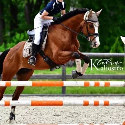 Очень изящная, высокая и красивая кобыла. Привезена в Россию в 2023 году и на сегодняшний день выступает в соревнованиях по конкуру с высотой до 140 см. Династия очень аккуратная и смелая лошадь с прекрасной…