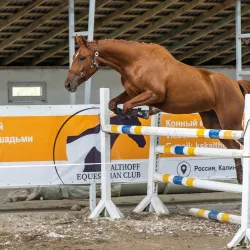 Четырехлетний тракененский жеребец. Комфортный в быту и под седлом. До трех лет рос со сверстниками в леваде, социализирован. Напрыган в шпрингартене до 140 см. На заводских испытаниях в трехлетнем возрасте…
