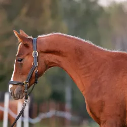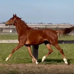 Трехлетняя тракененская кобыла. Заезжена в феврале 2025 года. Сейчас под седлом проходит базовую подготовку. На заводских испытаниях получила оценку прыжковых качеств в шпрингартене 9 баллов из 10 возможных…