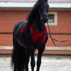 Фризский жеребец, 2021 г.р., высота—165 см в холке. Яркий представитель знаменитой фризской породы: эффектная внешность, роскошная грива и хвост, выразительные движения с высоким подъёмом конечностей.…