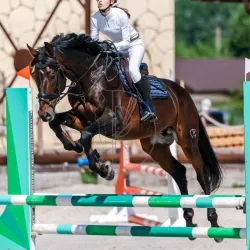 Жеребец 2020гр. Полукровная порода. Есть племенное свидетельство. Рост 163см в холке. Прыгает маршруты 80см, связки и одиночные выше.Возит ребенка на отлично.Легкий на управление, мягкий под седлом.…