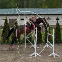 НА ПРОДАЖУ №4834:Жеребец 2019 г.р.Рост 168 см.Тракененской породы ( Питерский Цирк Голубица ).Заезжен летом 2024 года, в данный момент в конкурном тренинге под ребёнком, связки 80, способен прыгать…