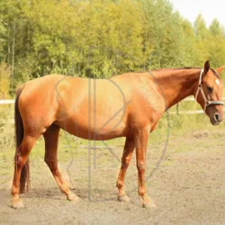 №1025 Кобыла, 2022 г.р., 150 в/х, рыжей масти. ❄️Донская помесь. Плавно входит в заездку: занимается на корде, на свободе, кавалетти, приучается к барьерам, уже знает седло, уздечку и всадника на спине.…