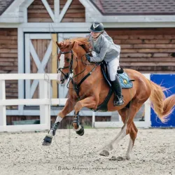 №1038 — Жеребец, 2014 г. р., 172 в/х, рыжей масти. ❄️ Голштинской породы. Конкур до 120 (дома до 130), одиночные выше. Розовый паспорт, внук Cor de la Bryer. Работает под КМС. ❄️ Не жеребцует, дурных…