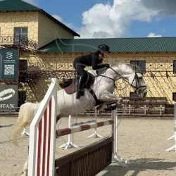 Напрыган под верхом до 80см связки, на свободе до 110см(выше не ставили). Прыгает все, не смотрящий. Базово выезжен. В силу возраста активный, но управляемый.Находится в тренинге,при работе с тренером…