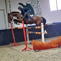Кобыла спортивной помеси 2021 г.р., рост 162 см, растет. Базово заезжена, напрыгивается под седлом и на свободе, не форсируется. Начинает стартовать в конкуре, опыт участия в маршруте до 60 см, в зачете…