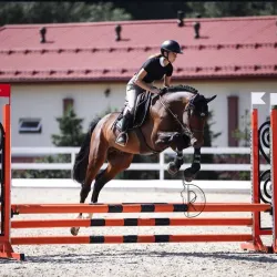 Спокойный жеребец конкур/выездка Подойдет под ребенка Маршруты на соревнованиях 80 см, Дома 90 см Шпринт 120 см Выступал по детским ездам Дома элементы юношей Плечи, принимания, контргалоп Сырые менки…