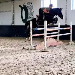 Работает под детьми и любителями. Можно посадить совсем начинающего. Не жеребцует, максимум гу гу. Регулярно выступает на стартах по конкуру до 100см, может выше. Не смотрящий, смелый. Подстраивается…