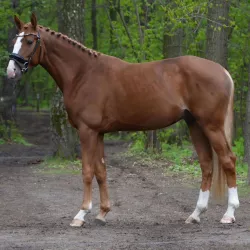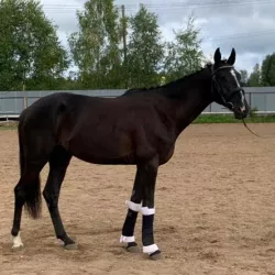 Очень изящная, высокая и красивая кобыла. Привезена в Россию в 2023 году и на сегодняшний день выступает в соревнованиях по конкуру с высотой до 140 см. Династия очень аккуратная и смелая лошадь с прекрасной…