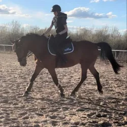Мерин спортивной помеси 2016 г.р., рост 163 см. Выступает по детским и юношеским ездам под ребенком, имеет положительный стартовый опыт, регулярно в призах. Для общего развития прыгает связки до 60, выступал…