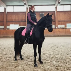 Кобыла спортивной помеси 2019 г.р., рост 164 см. Выступает по маршрутам до 100 включительно, дома прыгает связки до 120. Знает троеборные барьеры. Работает на всех площадках идеально, ходит в лес, поле.…