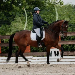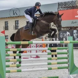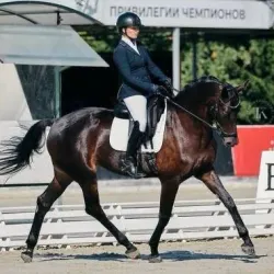 Очень изящная, высокая и красивая кобыла. Привезена в Россию в 2023 году и на сегодняшний день выступает в соревнованиях по конкуру с высотой до 140 см. Династия очень аккуратная и смелая лошадь с прекрасной…