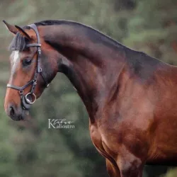 Очень изящная, высокая и красивая кобыла. Привезена в Россию в 2023 году  и на сегодняшний день выступает в соревнованиях по конкуру с высотой до 140 см. Династия  очень аккуратная и смелая лошадь с прекрасной…