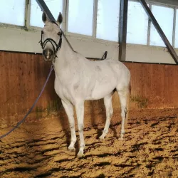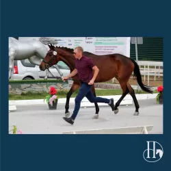 Очень изящная, высокая и красивая кобыла. Привезена в Россию в 2023 году и на сегодняшний день выступает в соревнованиях по конкуру с высотой до 140 см. Династия очень аккуратная и смелая лошадь с прекрасной…