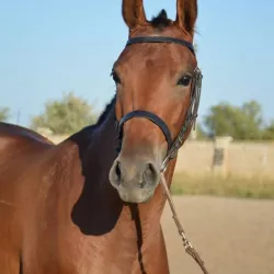 Очень изящная, высокая и красивая кобыла. Привезена в Россию в 2023 году и на сегодняшний день выступает в соревнованиях по конкуру с высотой до 140 см. Династия очень аккуратная и смелая лошадь с прекрасной…
