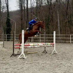 Отец ганноверский, мать тракененская. Линия Dark Ronald. Старты маршруты до 115 см (под опытным), маршруты до 105 см (под любителем), готовится выше. Дома гимнастика до 140 см. Прыгает любые барьеры,…